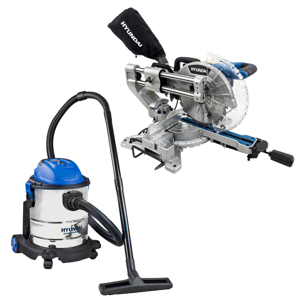 The HYMS2000E Mitre Saw is - along with many of our other Hyundai power tools - compatible with our Hyundai HYVI3014 Wet & Dry Vacuum (sold separately), which features a built-in socket for connecting to the mitre saw’s dust extraction port for direct suction of fine shavings and sawdust for an even easier cleanup. This makes it especially practical as a workshop vacuum cleaner and thus is ideal for DIY enthusiasts. Click here to shop.